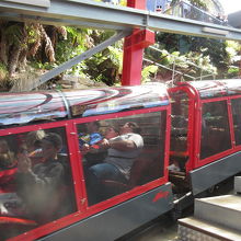 最大傾斜角52度のトロッコ列車の下りは谷底へ落ちてしまうのではないかと思わせるほど迫力があった。落ちないように座席には落下防止のバーがついている。熱帯雨林の中を滑り降りてスリルをかなり味わえる。ロープウェイからの景色は良い。