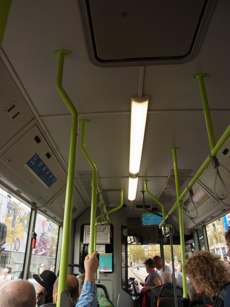ちょうどアムステルダムでイベントが開かれていたこともあり、車内は大混雑でした。乗った当初は、次の停留所がどこ、というような表示が出ていたのですが、途中からそれが表示されなくなり、降りる場所が分からなくなってしまいました。