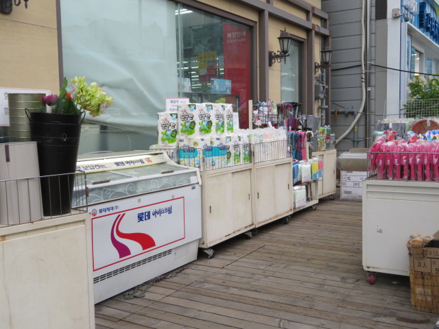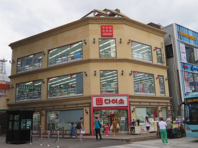 釜山市街に何店かあるうちの一店で地下鉄2号線海雲台駅3番出口から大通りを海雲台ビーチに向かってすぐの角にあります、3階建ての大きな店舗で、ここではビーチ用品が多く売られています、売られている商品の種類も多く食べ物も多くあります、値段は日本よりちょっと高めです、お客さんは多くいました。