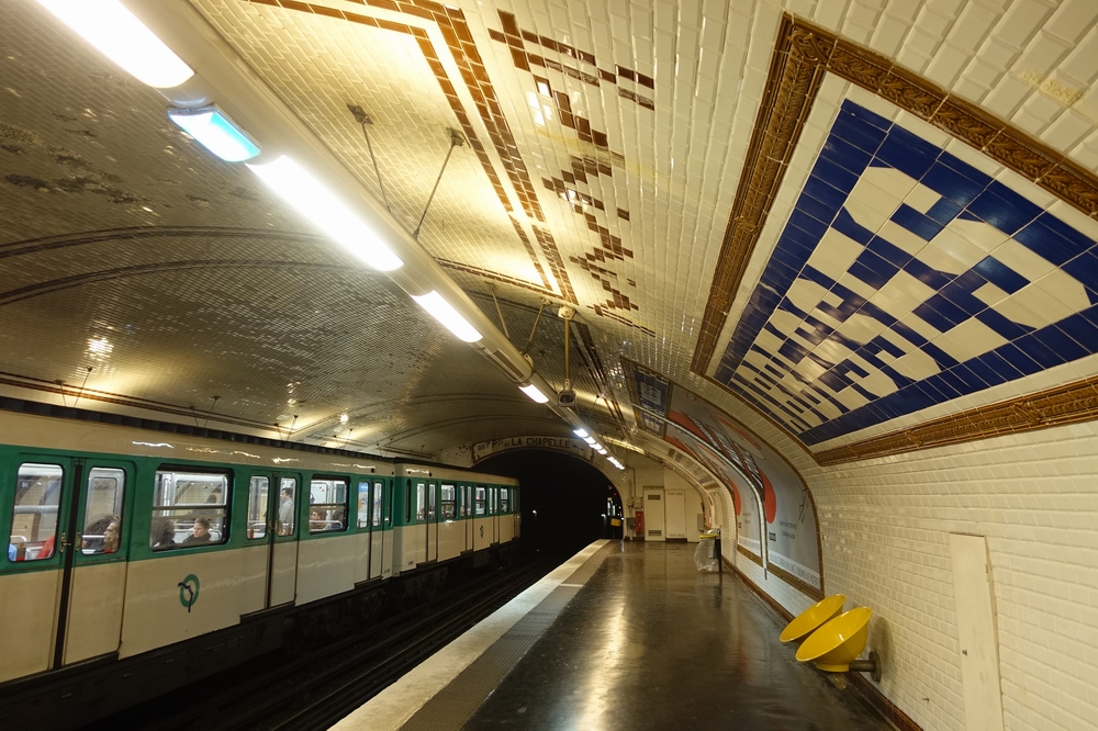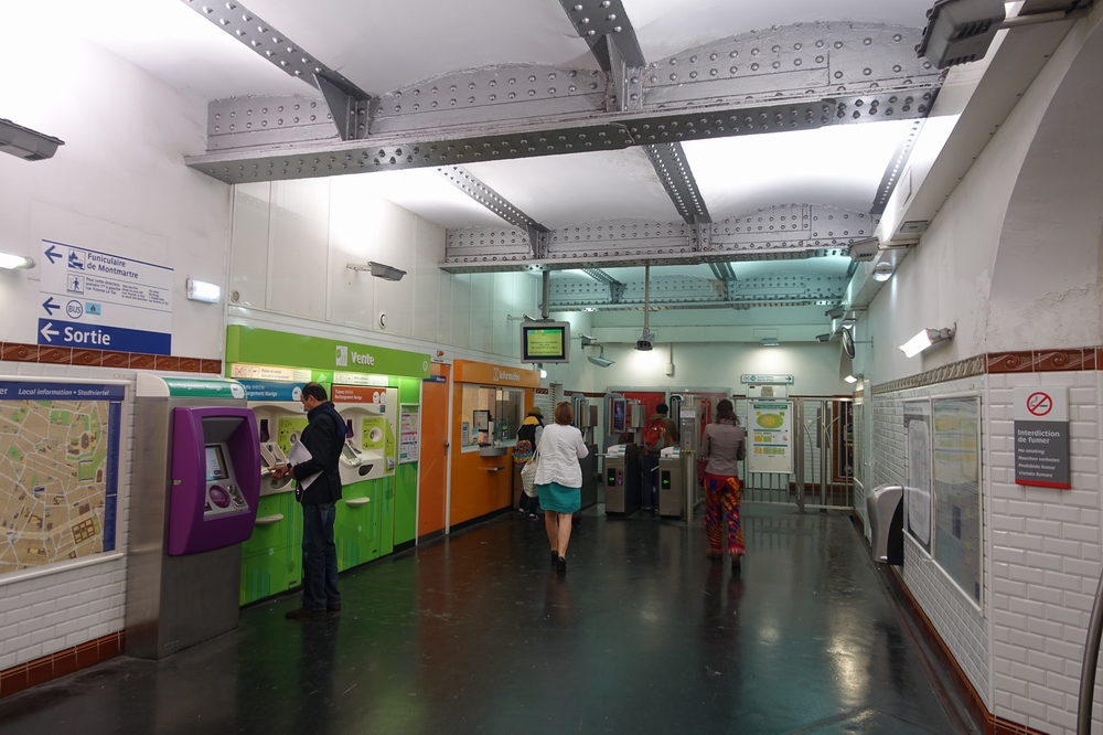 モンマルトルに行く際、メトロ12号線のアベス駅で下車して散策をスタートしました。ここからケーブルカーの下の駅まではイヴォンヌ ル タック通りを東へ徒歩5分ほどの距離。地上出口はメトロ開通当時から残るアールヌーヴォー建築のおしゃれなデザインです。