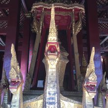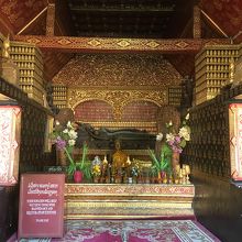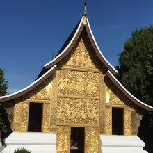本堂の大きさと金色に輝く霊柩車倉庫など印象に残る建物です。
