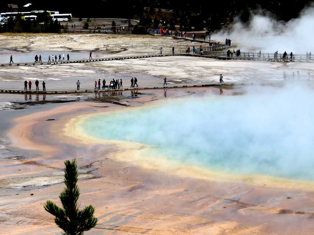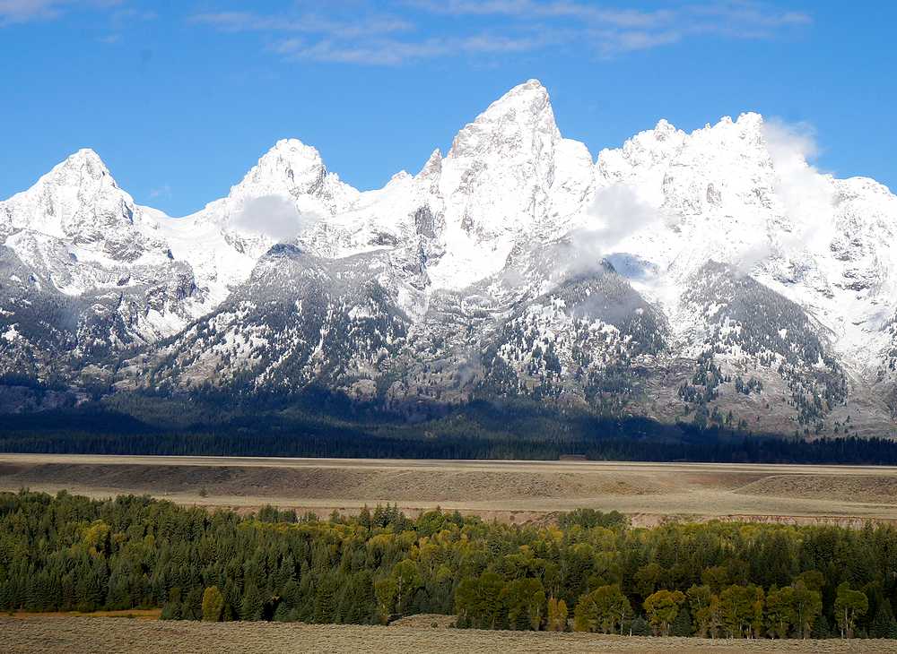 2017年の9月20日から25日にはグランドティトンの黄葉が見ごろを迎えるだろうと予想し、ついでにイェローストーン国立公園へも行こうと日程に組み入れましたが、予想外の寒波がこの地方を襲い、積雪にみまわれました。グランドティトン国立公園からはイェローストーンの南口へのアプローチとなりますが、南口からオールドフェイスフルまでの道が標高が高いところを走っているため、このルートは最後まで閉鎖されていました。なんとか開通したものの、主目的のグランドプリズマティックスプリングが外気が冷たいため、湯気が多く、クリアに見れませんでした。イェローストーンはプールの温度と外気温との差の小さい夏に訪れるところだと思い知らされた今回の旅行でした。