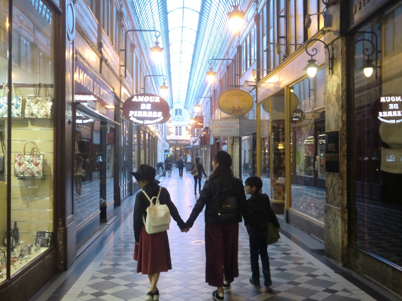 宿の近くにパサージュあり。9時ぐらいに行ったのでお店は開いていないところが多いが、ディスプレイをみながら、ウインドウショッピングだけでも十分楽しめる。パリらしい写真がとれそうなスポット。雨の日でも楽しめそう。