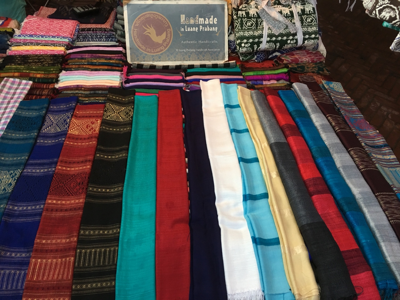 ラオスの手織りの布たちが多く並びますが、それ以外の見所はあまりないですね。