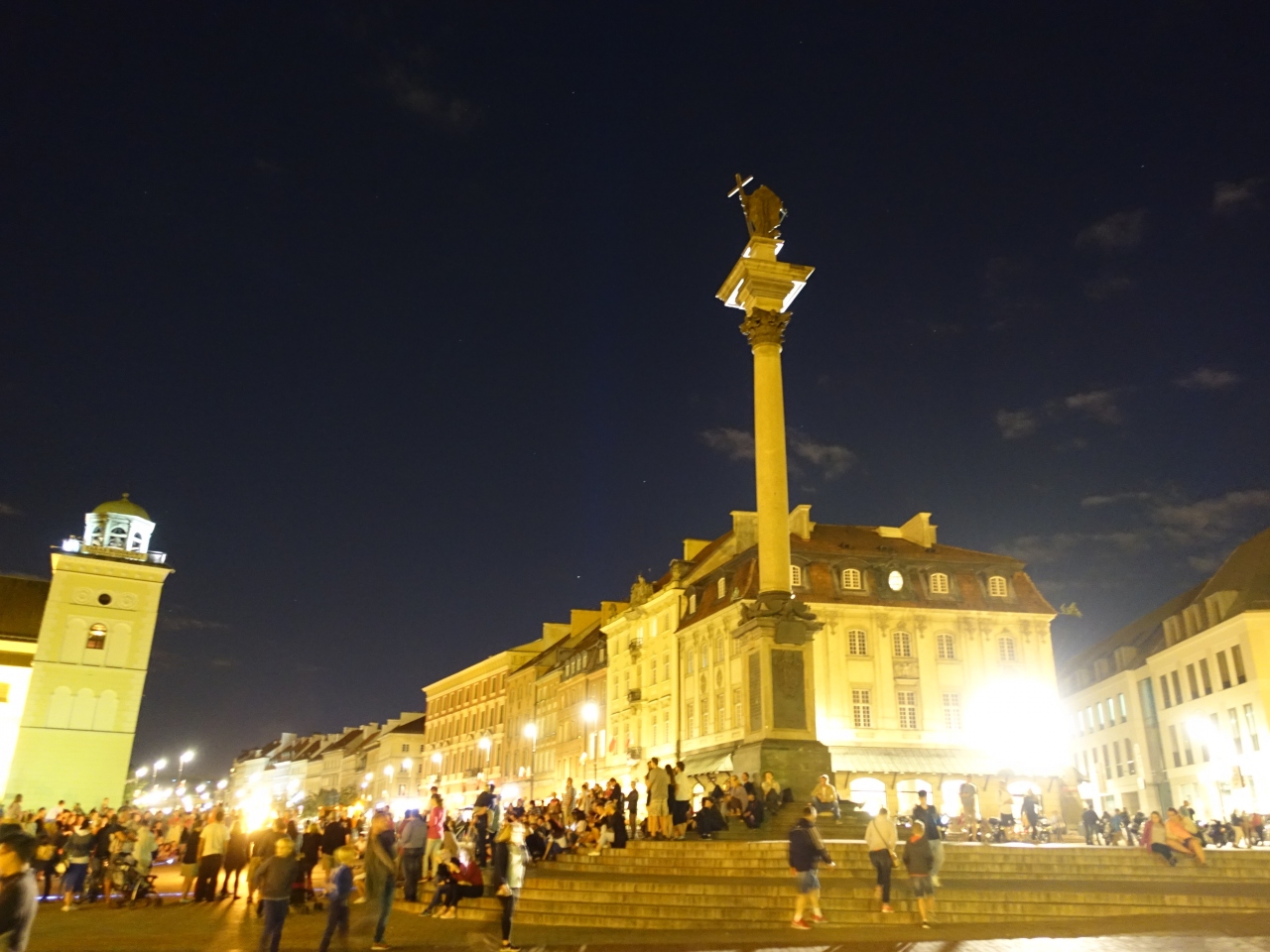 ワルシャワの「王宮広場」は、観光客も地元の人も多く、夜遅くまで賑わう旧市街の中心地です。旧王宮に面し、中央にはジグムント3世碑が飾られた高い柱が建っています。