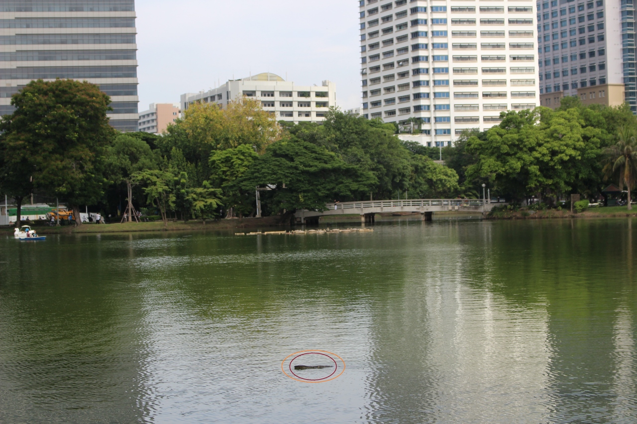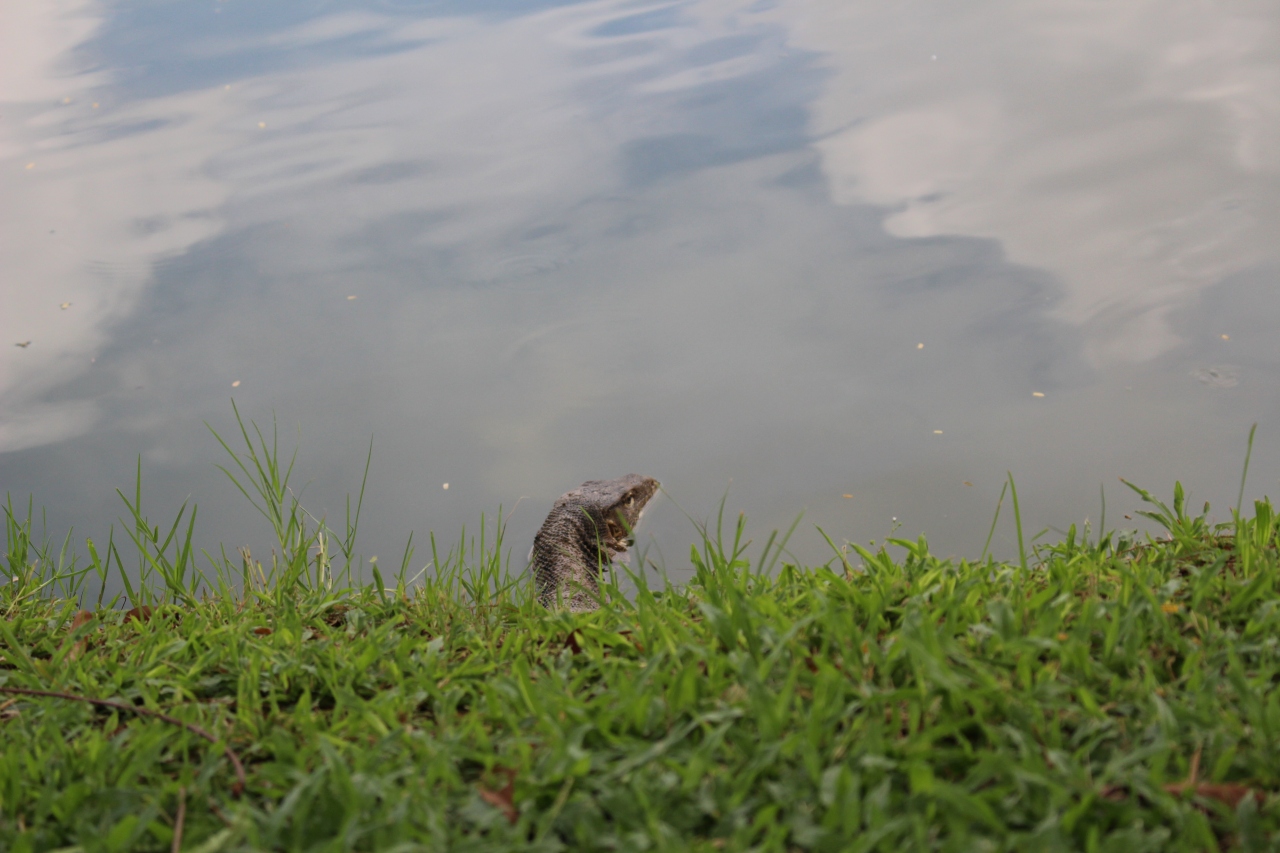 池に何やら泳ぐ物体があったので近くにいた青年に聞いたら、大トカゲだそうで・・