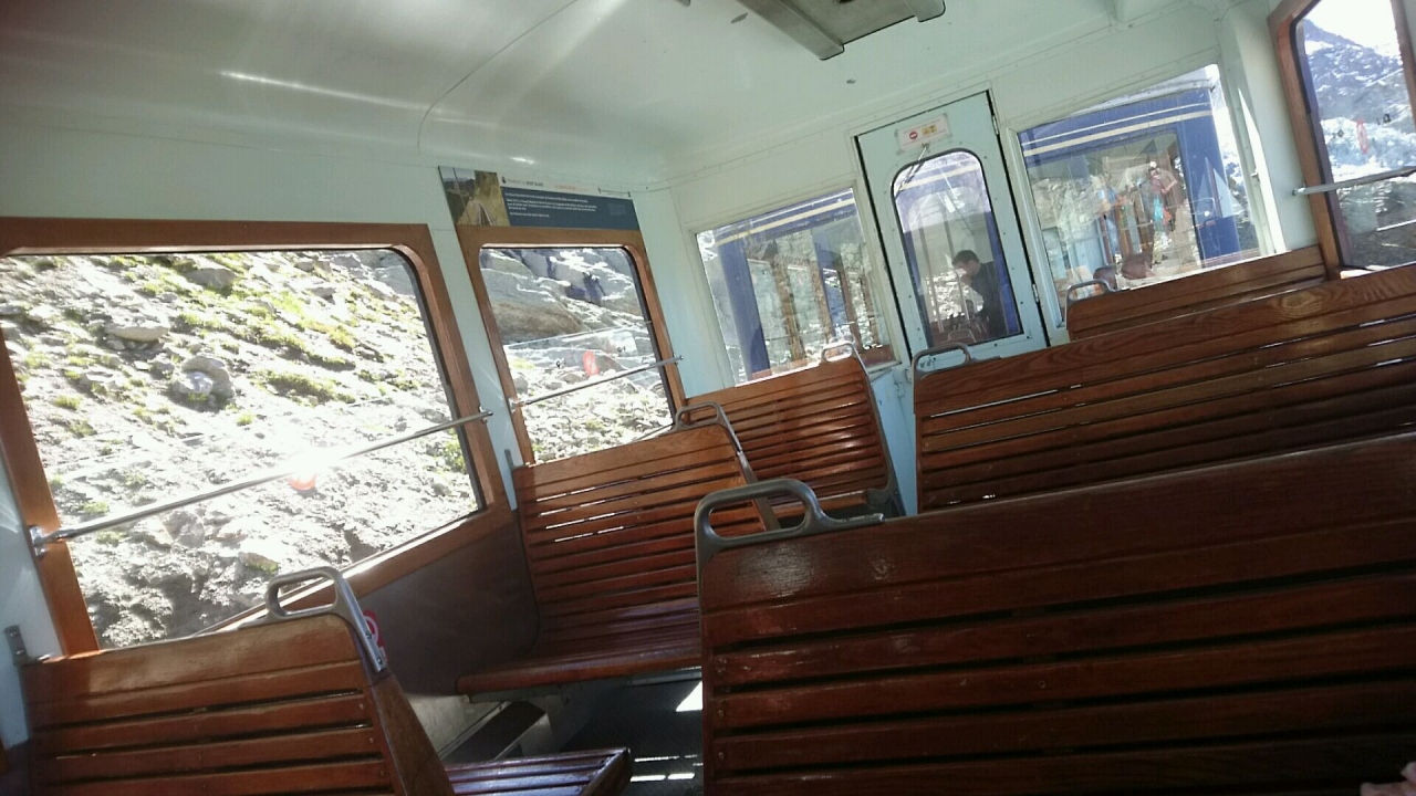 頂上の終点の1つ手前の駅から乗りましたが、その時点で下から乗ってきていたお客さんが多く満席で座ることができませんでした。かなり急な所を登って行くのでやはり席はあった方が良いです。