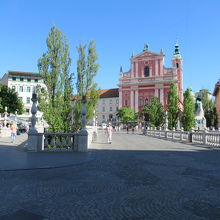 正直、それで??という感じですし、3本同時に写真におさめるのは至難の業ですが、広場にあるピンクの教会が美しくて綺麗な場所でした。