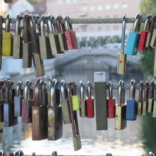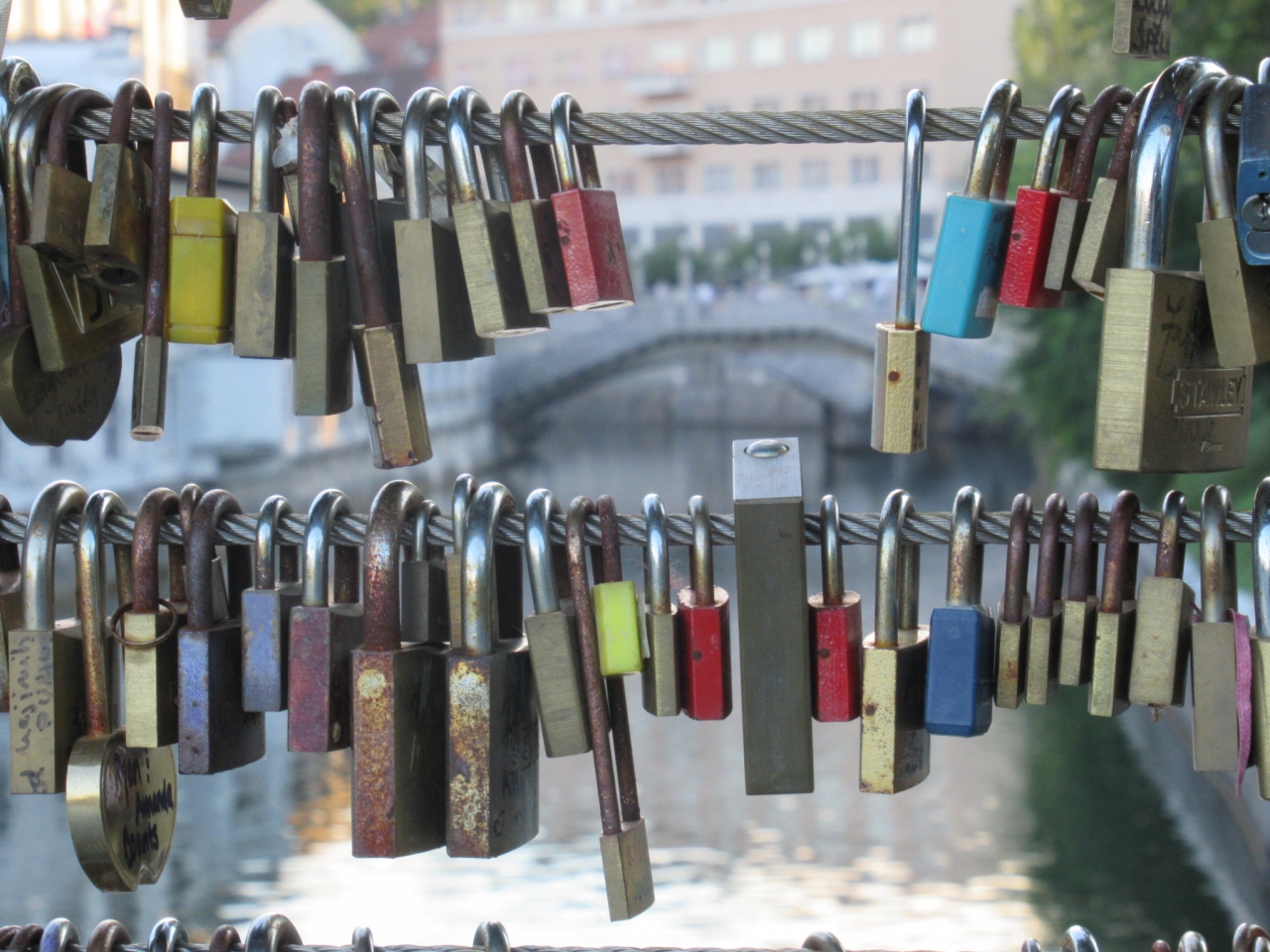 欄干にはたくさんの南京錠が。恋人が愛を誓いあうスポットなのでしょうか?