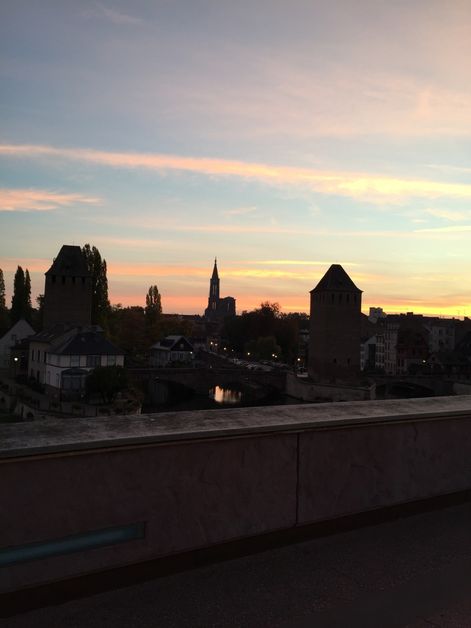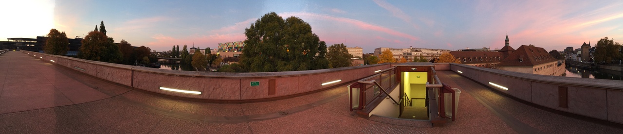 朝早く通りました。改装したようで建物内通路は明るくキレイです。建物の上のテラスからはクヴェール橋やプティフランス、遠くにカテドラルも見えます。薄暗い景色が朝焼けに染まって鏡のような水面を水鳥が滑っていくなんて景色が見れます。