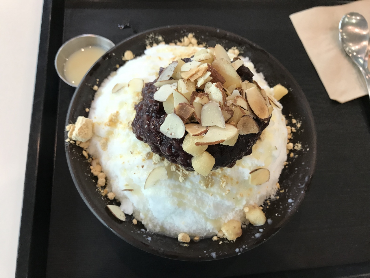 ソルビンはきなこ、きなこ+あんこ、チーズ、ブルーベリーチーズの4種類。今回は無難にきなこ+あんこをオーダーしましたが、かき氷は日本では食べた事のないふわふわの食感。口の中で滑らかに溶けていきます。つ〜んといった感じも無し。きなこが意外に良いアクセントになっています。