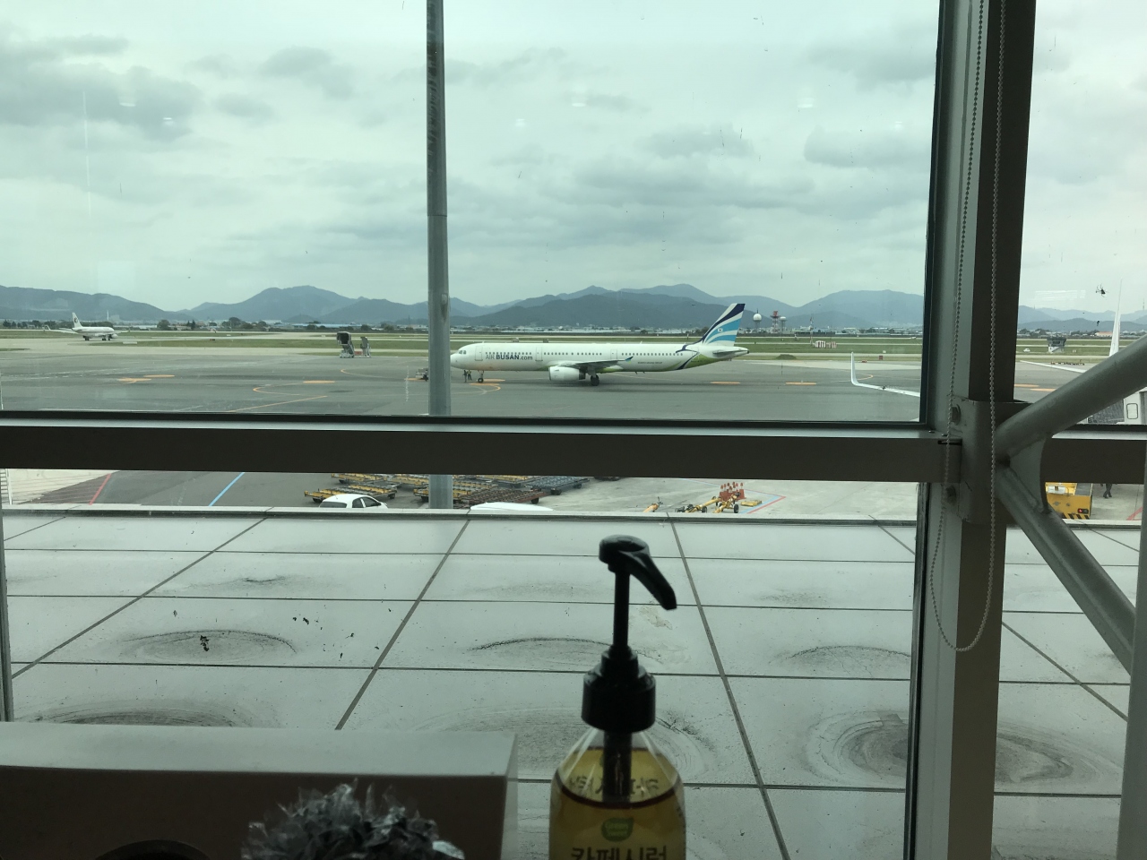 飛行機を眺めながら、韓国最後のデザートにGOOD!でした。