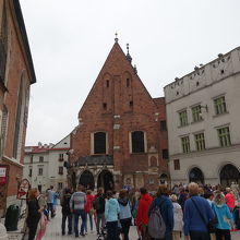 レンガ造りの三角形のファサードが印象的な小ぢんまりとした教会です。裏通りにも大小様々な教会が点在しているのもクラクフの魅力です。