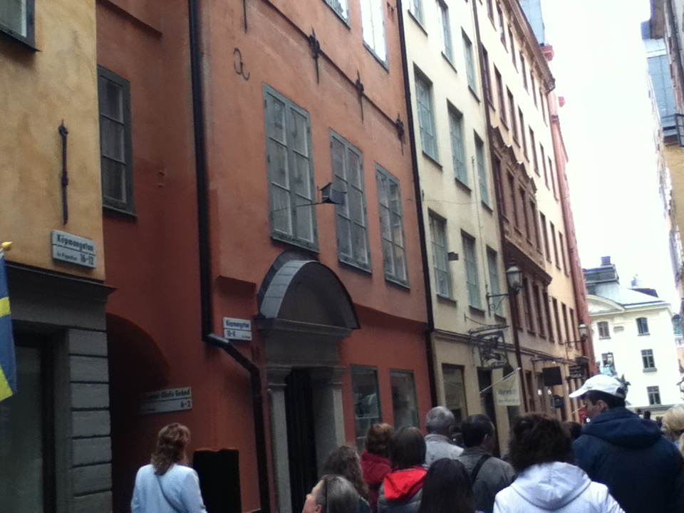 ガラム・スタンのノーベル博物館の東側にある路地。幅は狭く両側にはブラウン色系の外壁の建物が並びいい雰囲気である。アンティークショップが多くヴェステルロングガータン通りに比べ観光客は少ないのでゆっくり散策が楽しめる。北側の王宮に通じる細い路地沿いも素敵な雰囲気なので、併せて訪問するのもいいかもしれない。