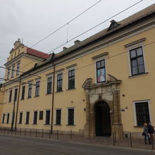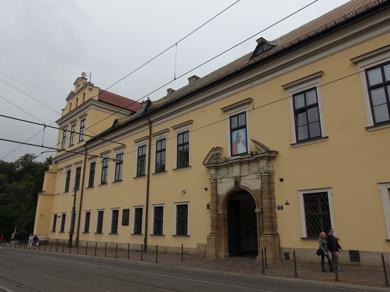 クラクフ旧市街の「大司教宮殿」は、聖フランシスコ教会のすぐ北側、通りを隔てて向かい合っています。こちらには、ポーランド出身のかつてのローマ法王・ヨハネ・パウロ二世が住んでいたこともあり、その肖像が飾られていました。特筆すべき観光スポットではないかも知れませんが、ポーランドならではの光景でした。