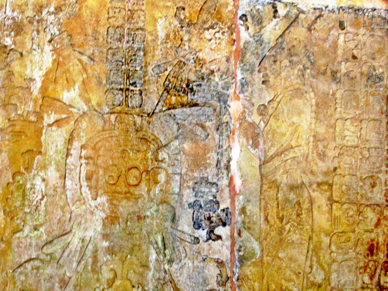 マヤ遺跡の絵は漫画的なことが多いのですが、太陽神に関しては漫画のレベルをはるかに超えた図柄でした。
