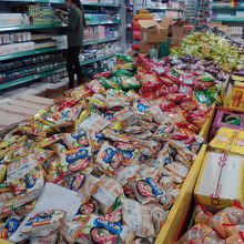 ポカラ一の規模を誇るショッピングモール。1階にはポカラ最大のスーパーマーケットが入っています。久しぶりに利用するスーパーマーケットはテンション上がります。何か買わなくては…と、わけのわからない強迫観念に迫られます。で、ついつい旅のストック品として石けんや歯磨き粉も買ってしまいました。他にはインスタントラーメンとコーヒー(3in1)。今までネスカフェは高くて手が出せませんでしたが「Mac Coffee」は16本入りで185Rs。1本あたり11.5Rsとネスカフェの約半額のお値段です。品揃え豊富なスーパーならではの商品ラインナップに感謝です。