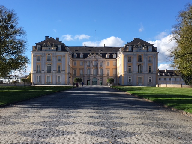 デュッセルドルフに仕事で宿泊し、1日自由行動の日ができたので、ボンに行くことにしました。いろいろ調べると、 デュッセルドルフとボンの間に、このアウグストゥスブルク城があることを見つけました。世界遺産にも指定されている立派なお城だということで期待して行きました。お城の外観や見事な庭園は時間制限なしで見ることができますが、お城の中に入るためには、見学ツアーに参加しなければならないそうです。ちょうど到着したのがお昼休みの時間で、残念ながらお城の内部は見ることができませんでした。しかし、駅を降りてすぐ目の前に広がるお城の姿には感動しましたし、見事な庭園にも驚きました。