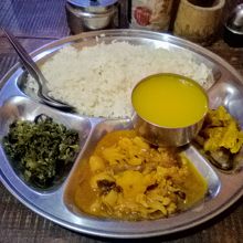 前回訪れた時はなかなかおいしかったので、また同じ 「Simple Nepali Food」(200Rs)をオーダー。いわゆるベジダルバート、3年前から50Rsの値上げです。あれ?こんなんだったかな。見るからに品のない盛り付け、そして食の進まない味付け…。まるでインドのターリーのよう。はっきり言って美味しくありません。作る人が変わったのかな。ダルバートを食べるなら他の店にした方がいいです。ちなみに改心したようで前回嫌な顔をされた“おかわり”はOKになっていました。 ノンベジ(チキン)である「Special Nepali Food」は320Rsです。