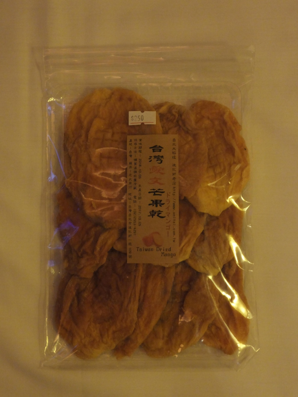 通りにはドライフルーツ、海藻、カラスミ等を売る店がズラリ。台湾産マンゴーの中でも1番美味しいと言われている愛文のドライマンゴーをお買い上げ。ちょっと高くついたけれど…