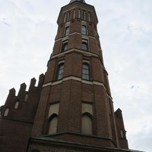 リトアニア第2の都市、カウナスの旧市街は、ネムナス川とネリス川に挟まれた区域ですが、その南側の川、ネムナス川に面して建つのが「ヴィタウタス大公教会」です。歴史を感じるゴシック建築で、近くで見ると、天に向かってのびる1本の尖塔が大迫力でした。