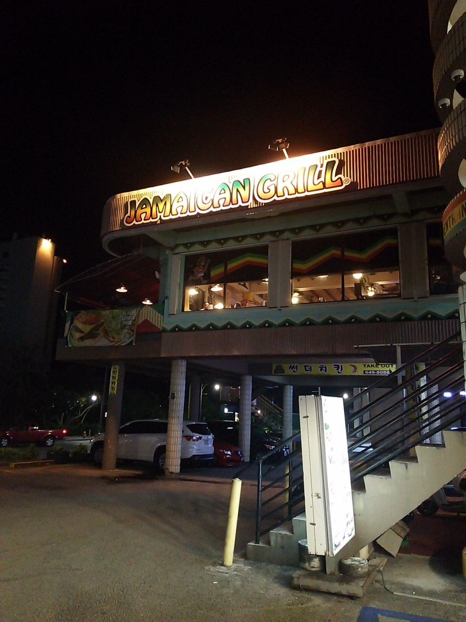宿泊ホテルの真横にあって、食べに行くの面倒だからとテイクアウトで利用しました。日本のファミレスみたいに下が駐車場で2階が店舗なので全然期待していませんでしたが、安いしボリュームも充分だし美味しい!コスバはかなりのものでした。ハンバーガーも総合評価じゃグアムトップ3入り決定です。ジャークチキンの味付けも中米風で好みでしたよ。