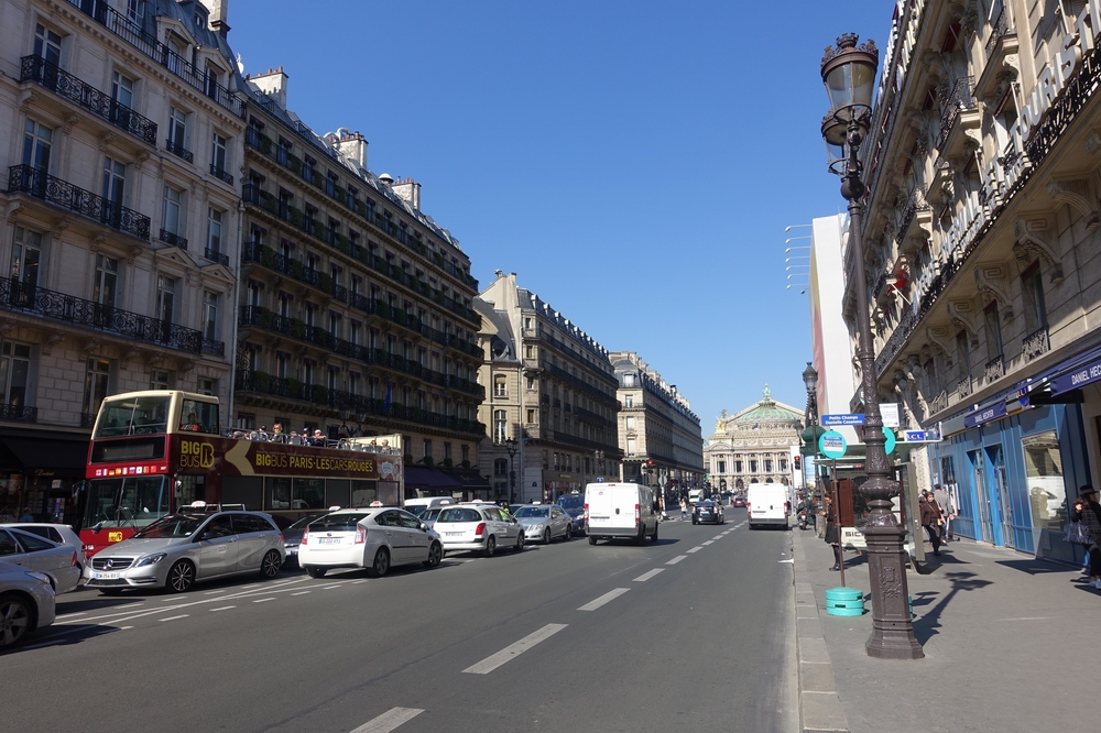 オペラガルニエから南のルーヴル美術館方面へとまっすぐのびる非常に交通量が多い通りです。街路樹がないのはちょっと殺風景ですが、正面にオペラガルニエがどーんと見えるのがいいです。