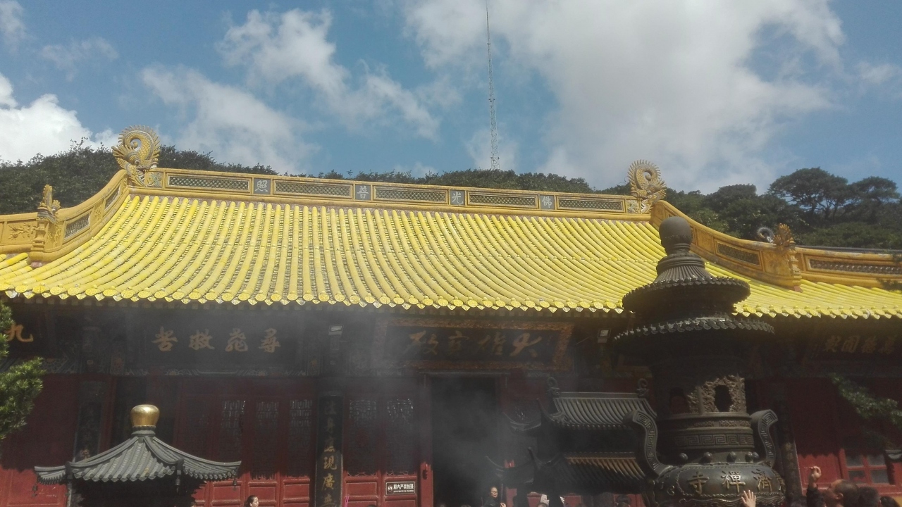 普陀山の頂上にこのお寺があります。ロープウェーで登ろうとしましたが、朝8時の時点で何百人も待っていたので、諦めて、歩いて登ることにしました。300メートルほどの山で、歩いて30分ほどで到着しました。頂上からの眺めが良かったです。また行きたいです。