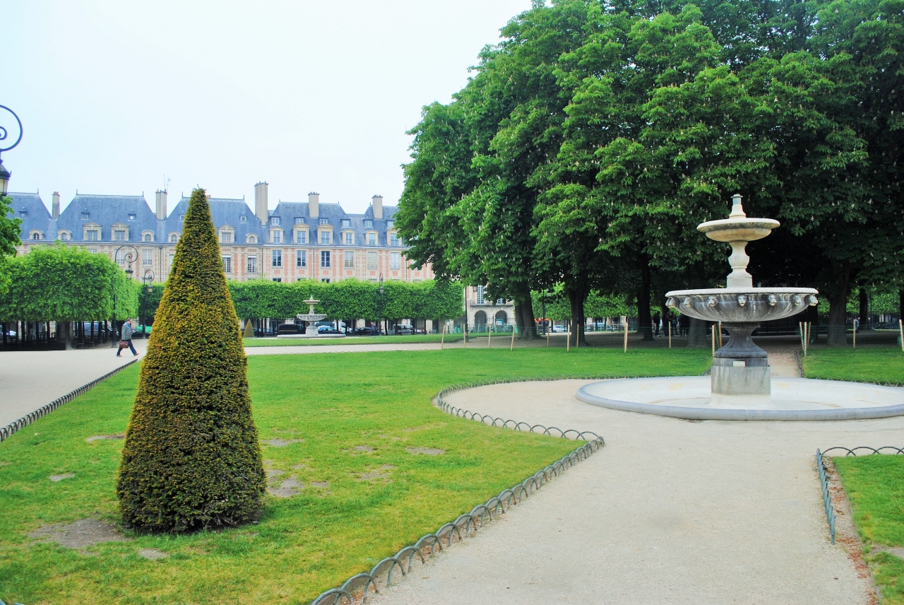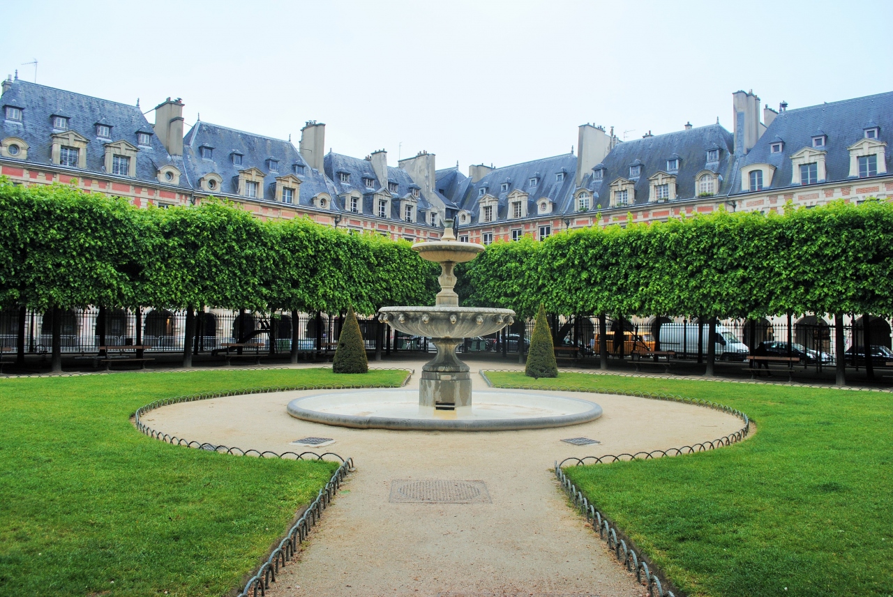 36の館に囲まれた芝生の美しいパリ最古の広場で、36の建物はすべて外観が煉瓦で統一されています。