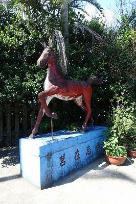 ホームには馬のオブジェがあります。