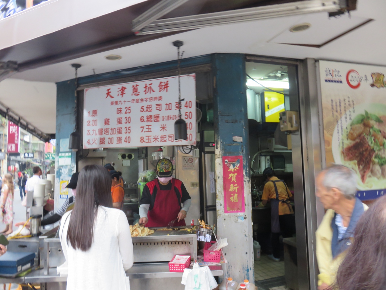 永康街の通りにある葱餅の店です。オリジナルのタレで食べる葱餅の専門店で、ネギ入りの生地を焼いて卵やハム・チーズなどのリクエストで自分のオリジナル葱餅を食べる事が出来ます。テイクアウトがベストで近くに永康公園があるので、歩きながら食べるより、そこで腰を下ろして食べました。