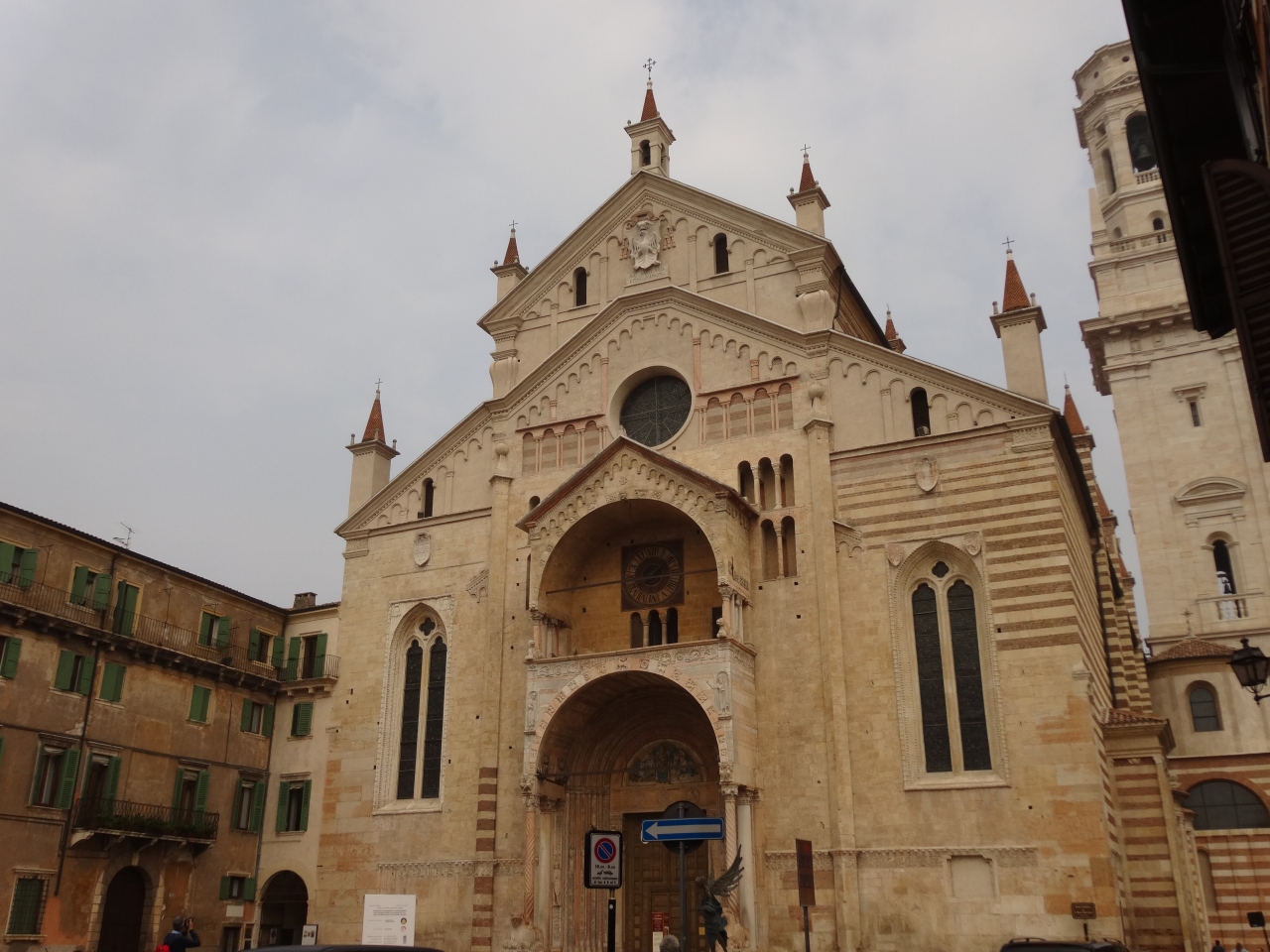 ヴェローナのドゥオーモはいくつかの建物による複合建築になっています。サンジョヴァンニ洗礼堂、聖エレナ教会、そして大聖堂本体となっています。古い初期キリスト教時代の建物の上につくられたようで、床下のローマ時代の遺跡を見学することもできました。