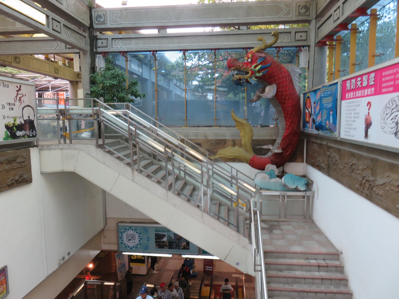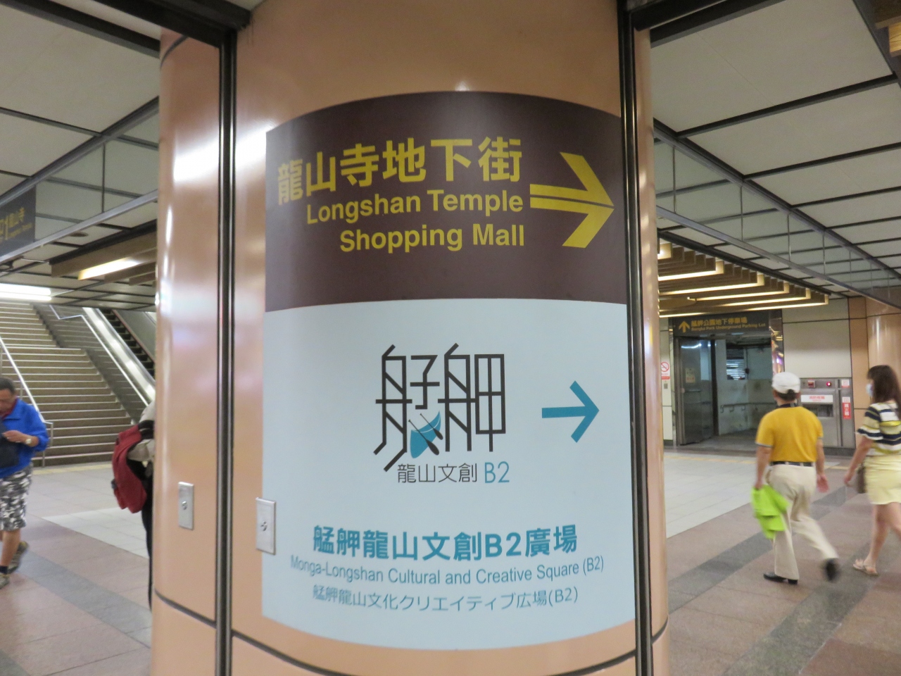 龍山寺周辺は萬華と呼ばれる古い下町で、MRT龍山寺駅と龍山寺との間には公園になっていました。台北駅からMRT板南線で2駅で隣の駅は西駅になります。龍山寺駅の改札を出ると地下商店街通路と地上に出る出口がそれぞれあります。地下の商店街の通路の各店をウインドウ・ショッピングしながら歩けば龍山寺の門前に出られ、駅から直接繋がっているように感じられました。