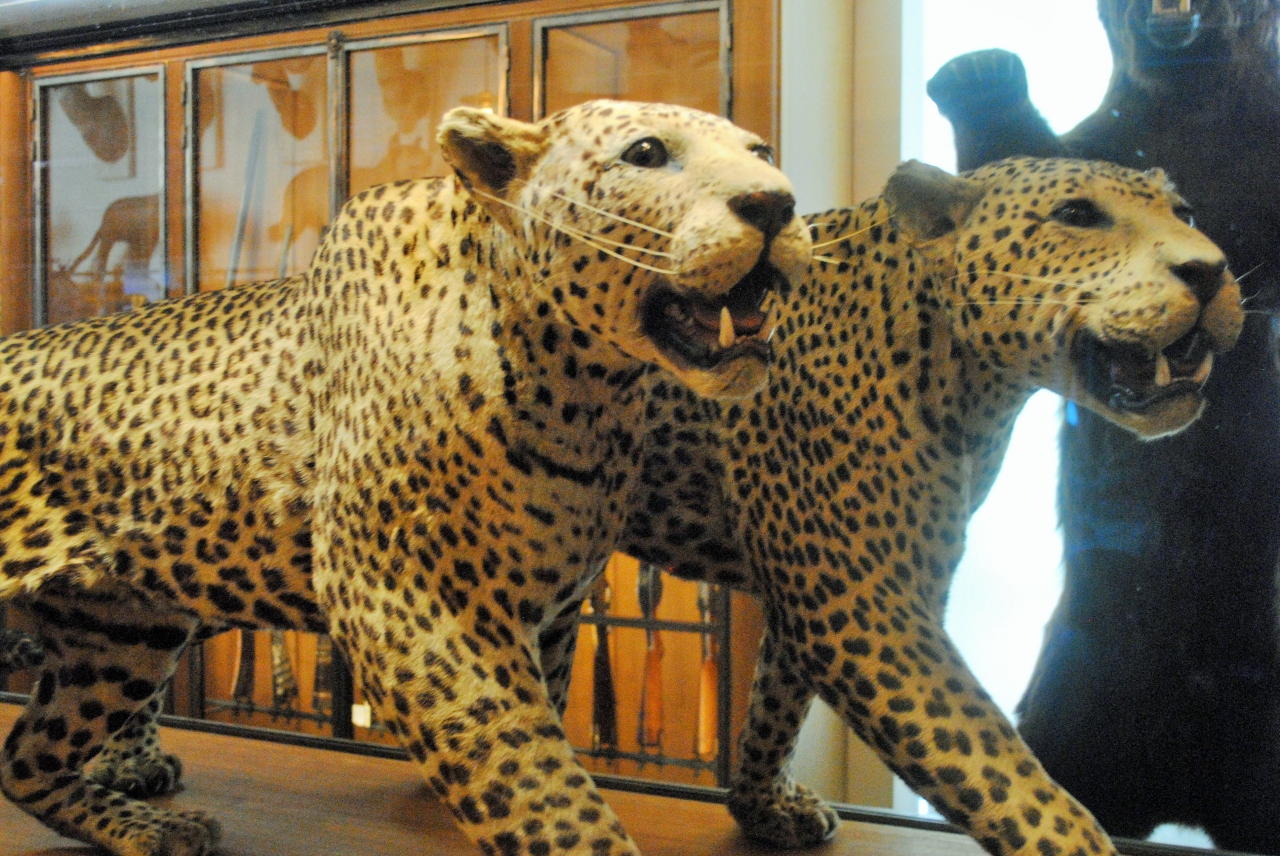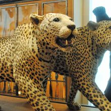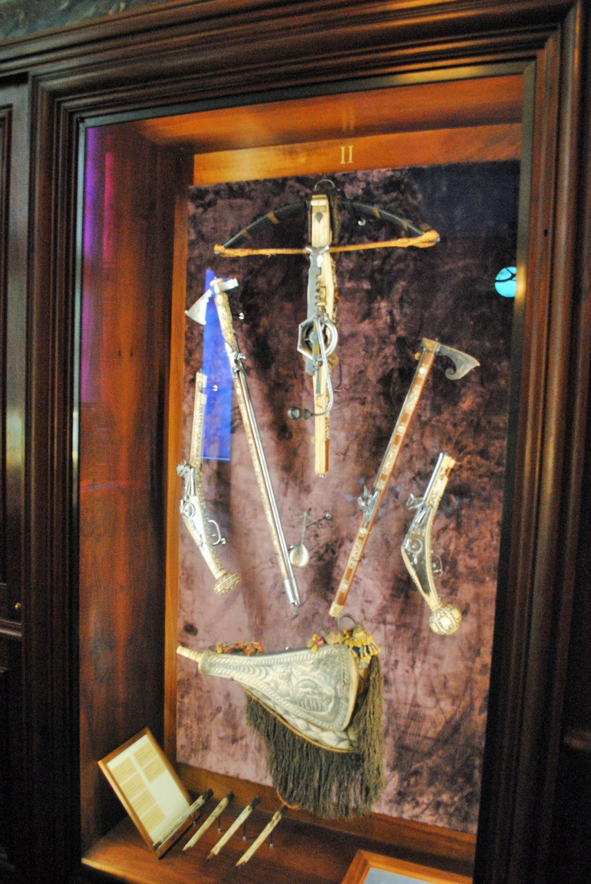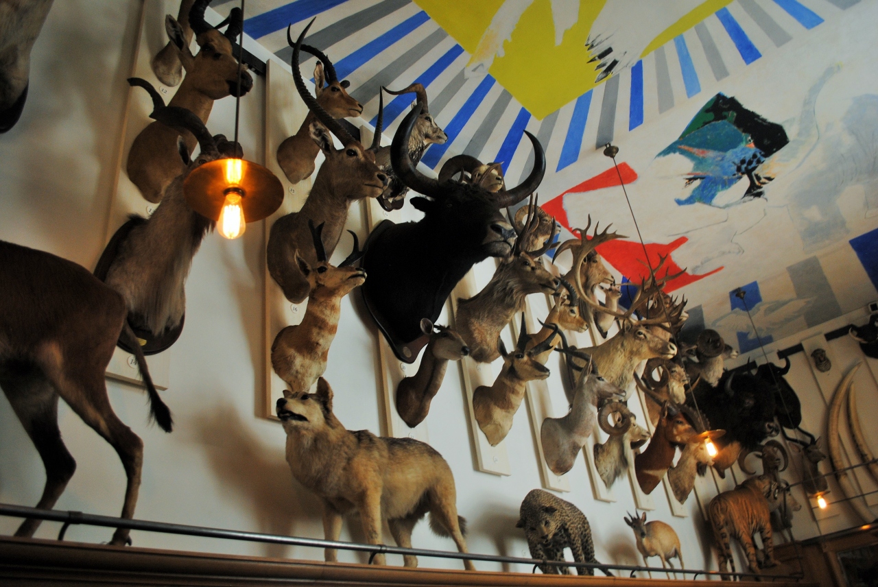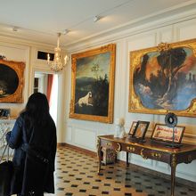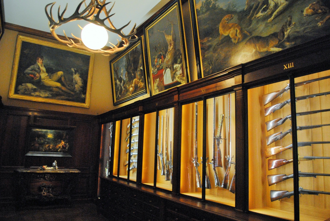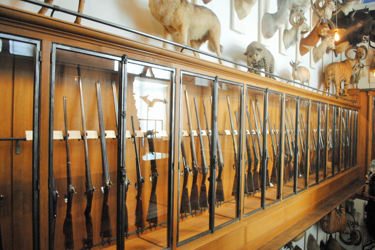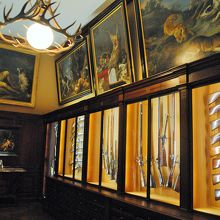 古い館で、獣のはく製、狩猟の銃や道具、猟に関する油絵などを観ることができます。