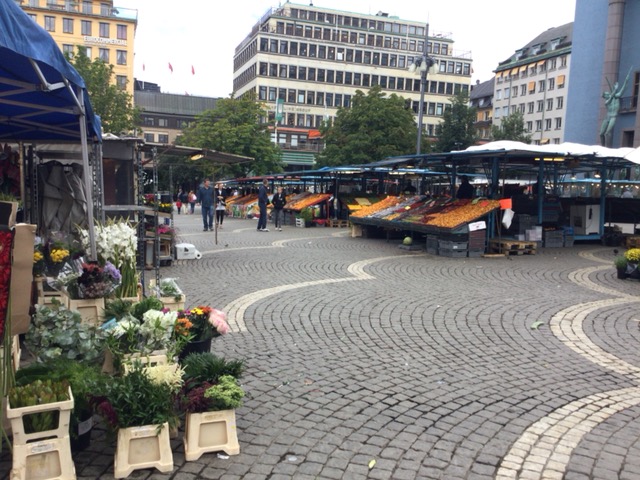 ストックホルム・コンサートホールの前にある広場。広場では毎日午前中から市が立っていて、新鮮な食材やカラフルな花がずらりと並んでいる。日本のような大きな掛け声はないが、屋台を見て歩くだけでも楽しい。広場の周りにはフィッシュ・スープで有名なカイサス・フィスクなど素敵なストランやカフェ、ショップもあり、併せて訪問するのもいいかもしれない。