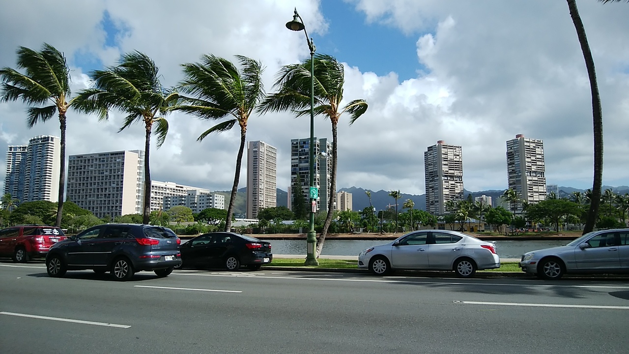 ルワーズ通りからヌイ通りまで歩いたが、意外と距離があり2~30分歩いたかな。写真をとりつつ景色を楽しみながらゆっくり散策したから。この日は風が強くて椰子の木もビュンビュン。豪邸の軒先の珍しい花々を見るのも面白かったわ。