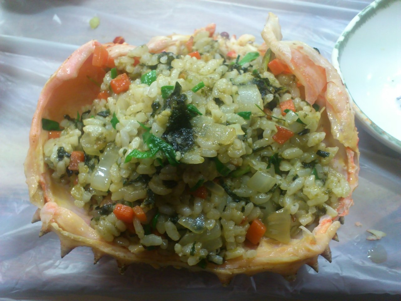 そのまま蒸してもらい、食べやすいようにハサミで切ってくれます。
