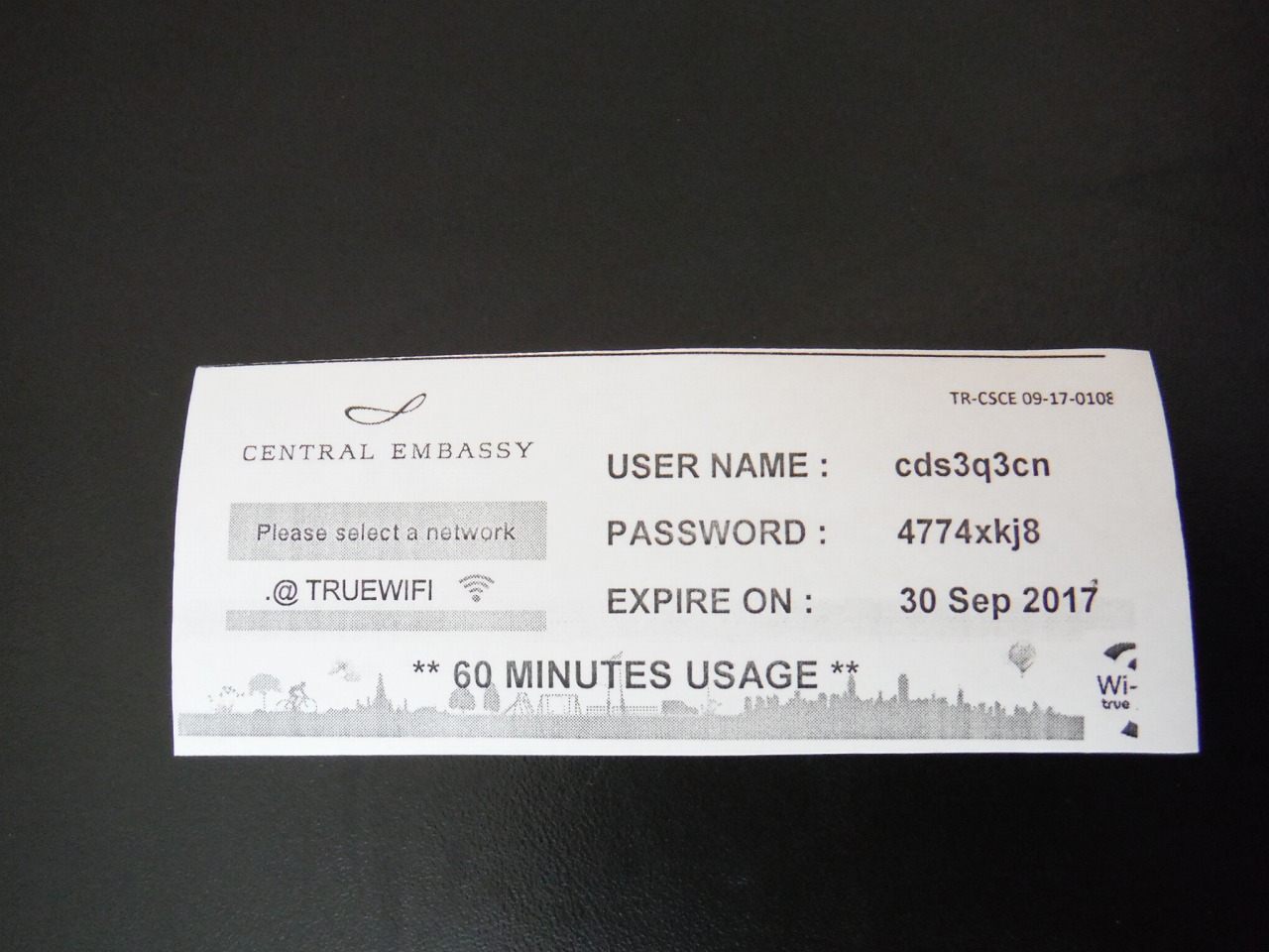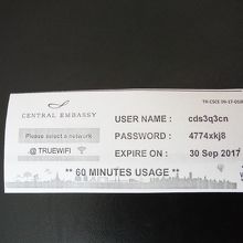 多くのショッピングセンターと同様にセントラルエンバシーでも無料のWi-Fiが使えます。インフォメーションデスクでWi-Fiにアクセスしたいと言うと、その日だけ有効のユーザー名とパスワードが書かれた紙をもらえます。パスポートの提示が必要です。