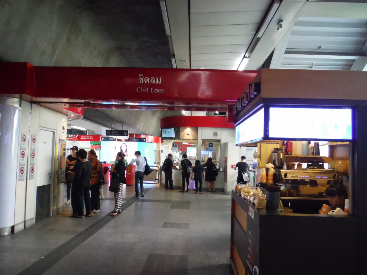 チットロム駅は隣のサイアム駅とスカイウォークでつながっています。伊勢丹はこの途中にあり、スカイウォークから入ることができます。サイアム駅と反対側の出口を出るとデパートのセントラルチットロムに繋がっていて、セントラルエンバシーにも行くことができます。
