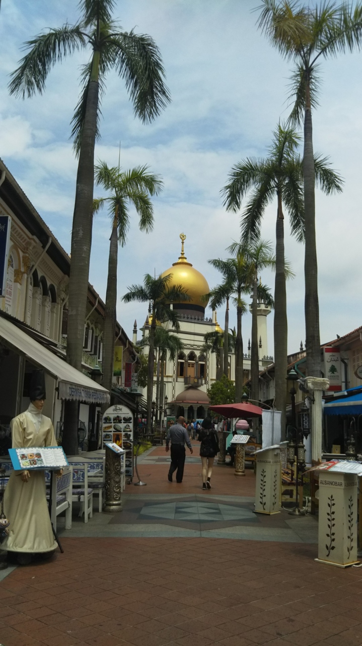 モスクの金色の屋根と、ストリート両脇の街路樹が、とても絵になる風景でした。