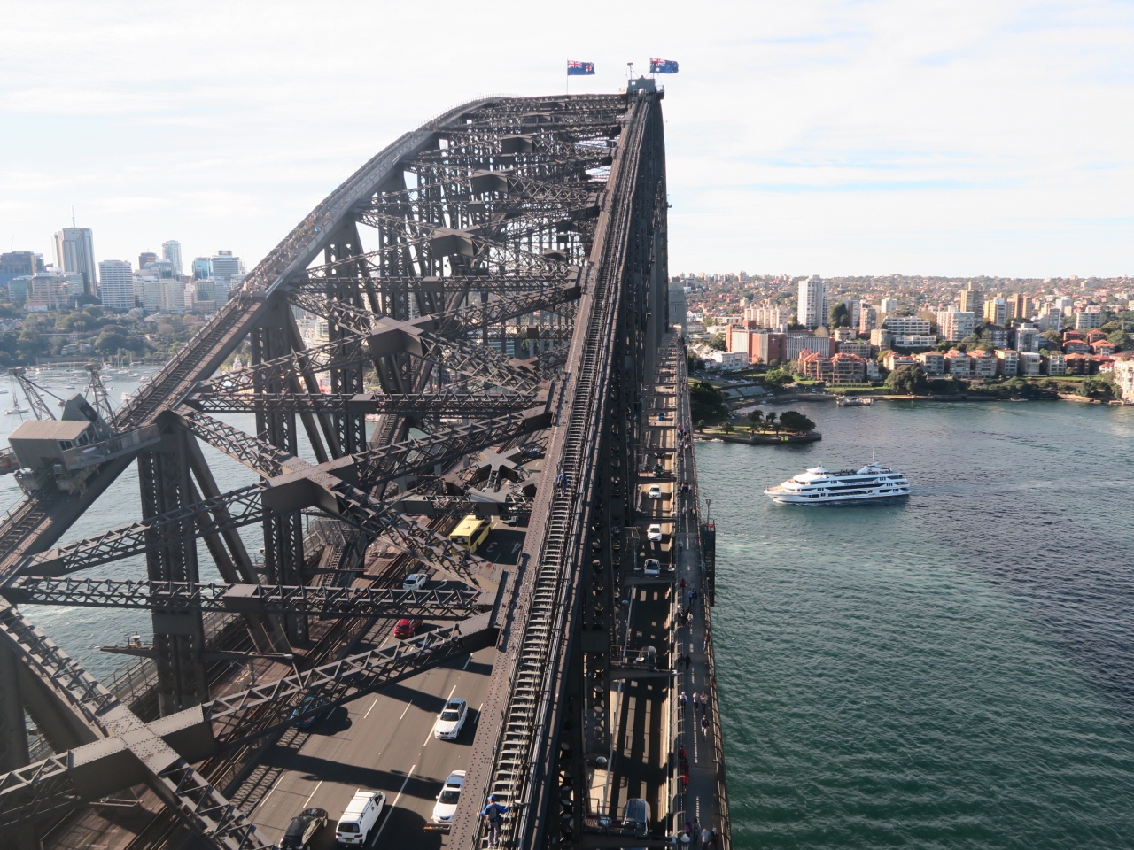 ハーバーブリッジを歩いて渡るのも眺めの良い散策コースなので、その途中で展望台に上るのがお勧めです。