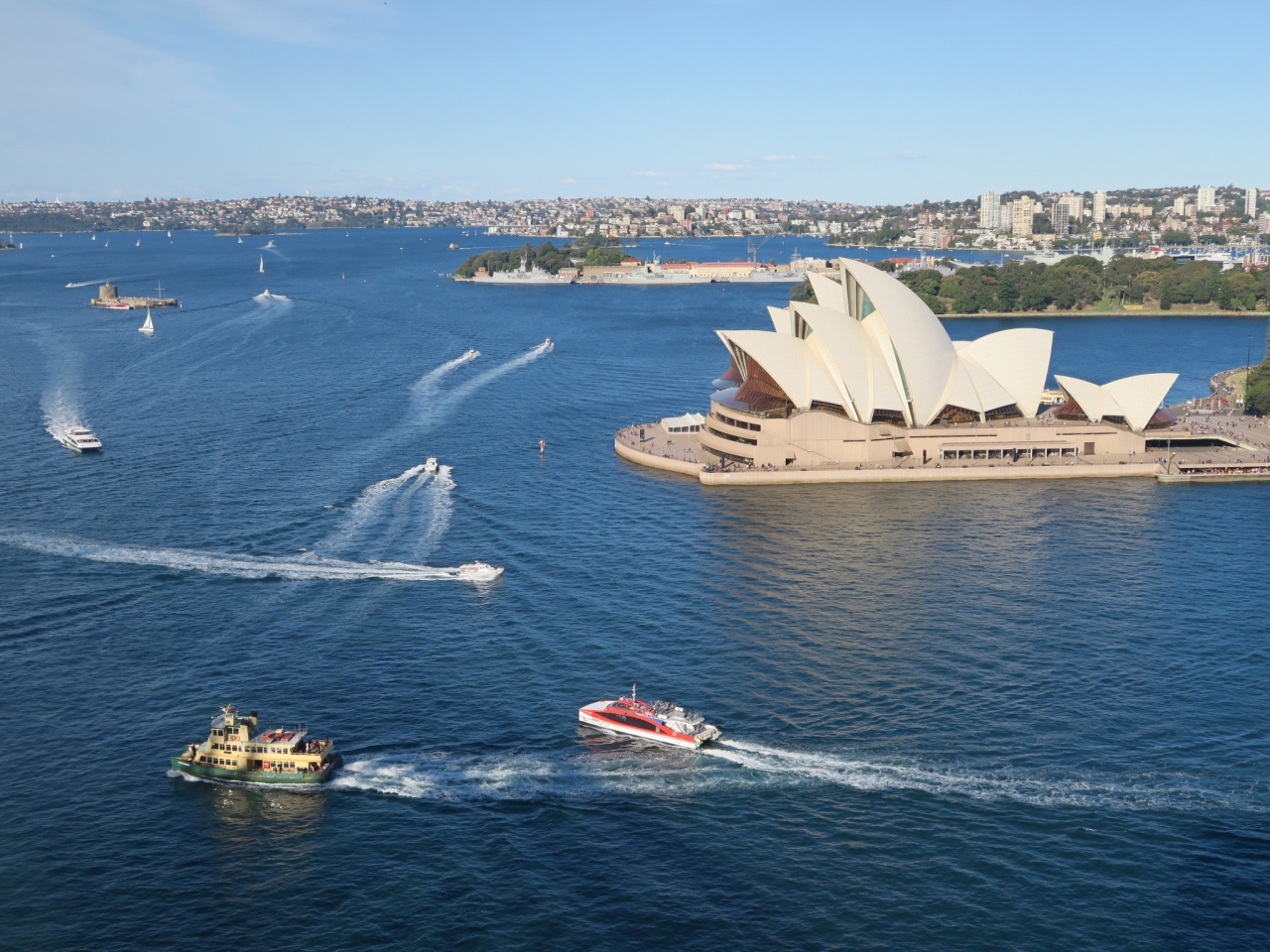 オペラハウスの方向をメインに見たいなら、逆光気味の午前中より午後に上るのが良いと思います。