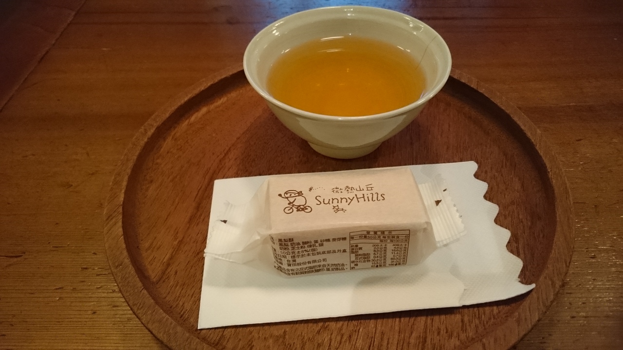 お店に入るとお店の方が店内のテーブルに案内下さり、お茶とパイナップルケーキを試食で持ってきてくれます。
