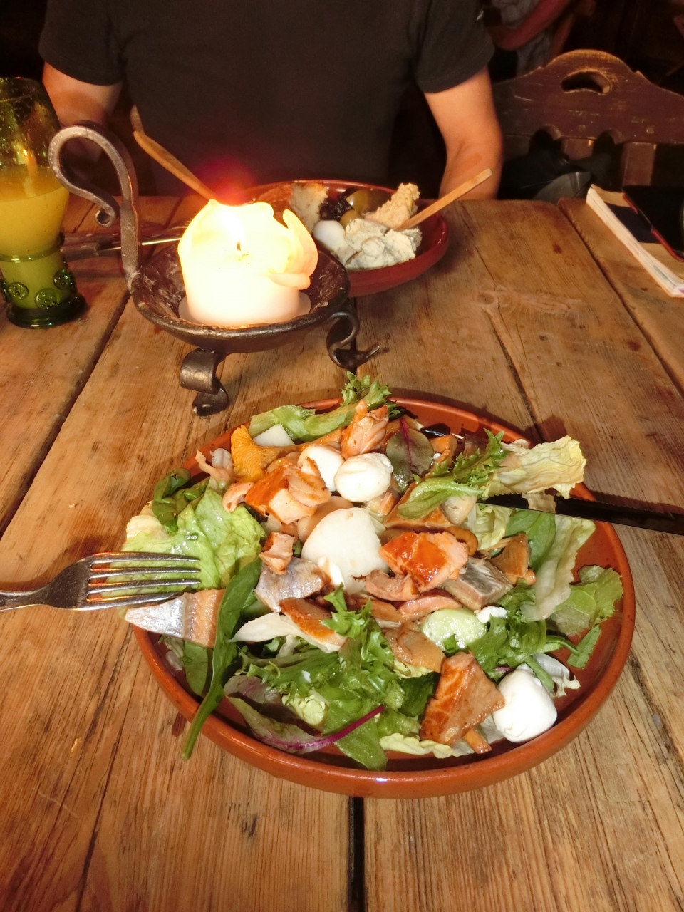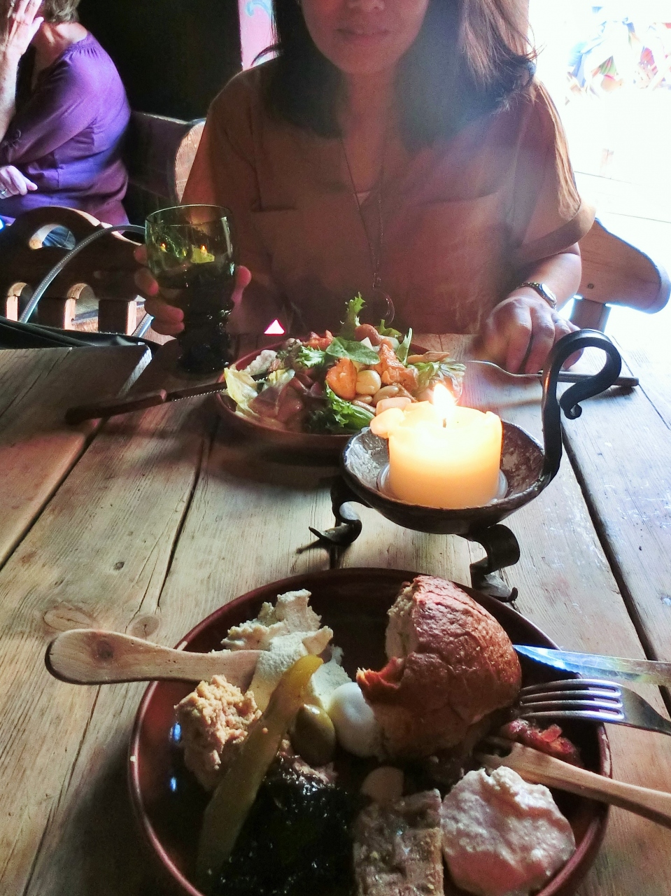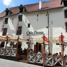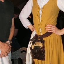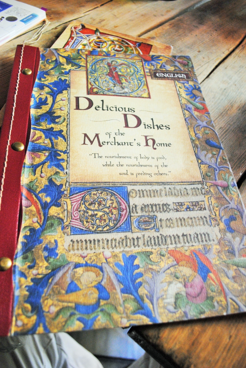 入口でメニューをチェックしていたら、中世の格好をした女性スタッフに英語で話しかけられました。