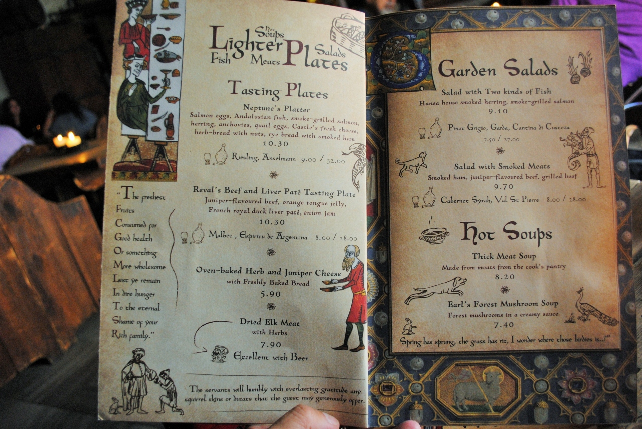 中世の雰囲気はスタッフの衣装にも、お店の内装にも、メニューの中世っぽい書体にも。。