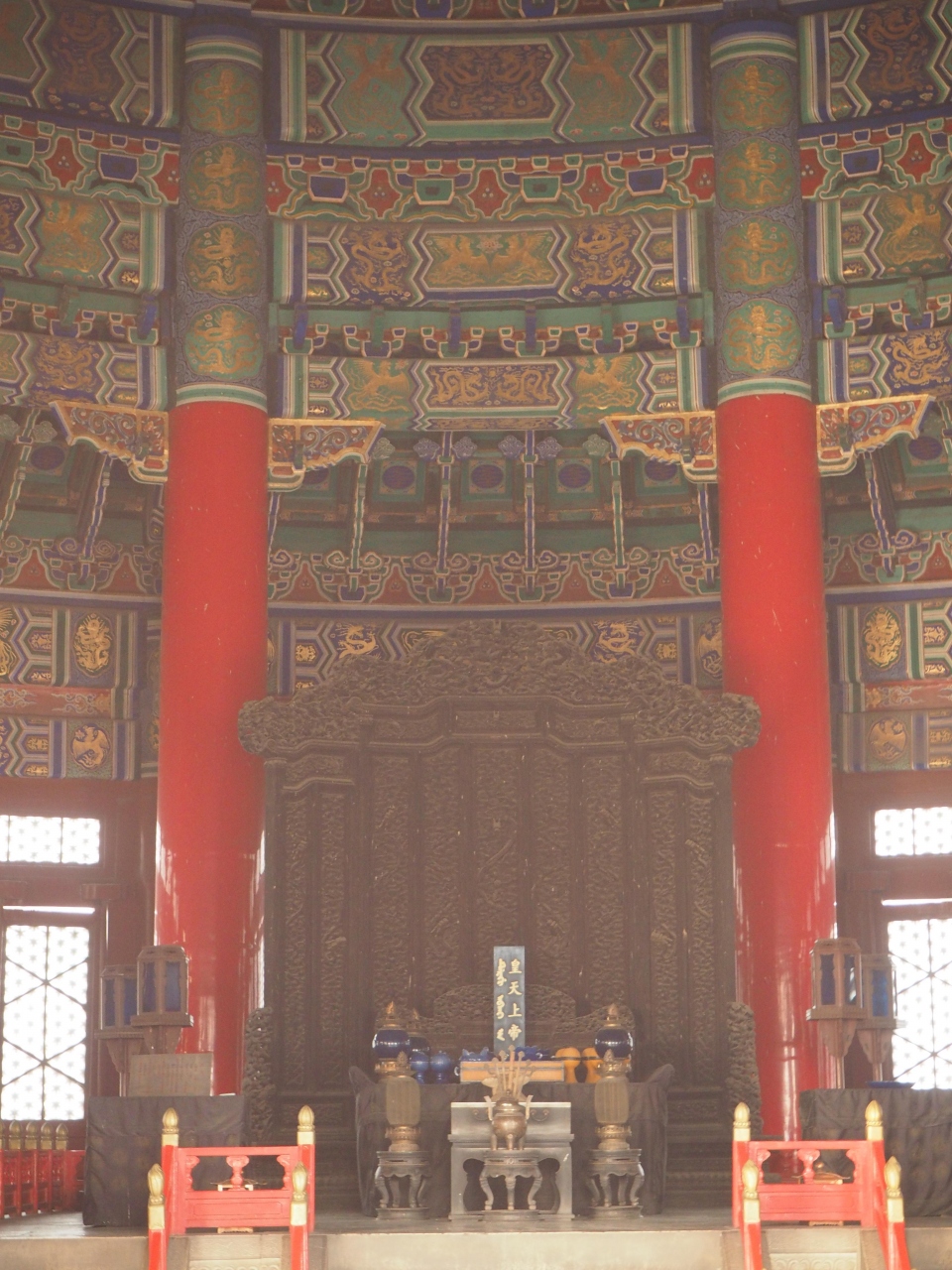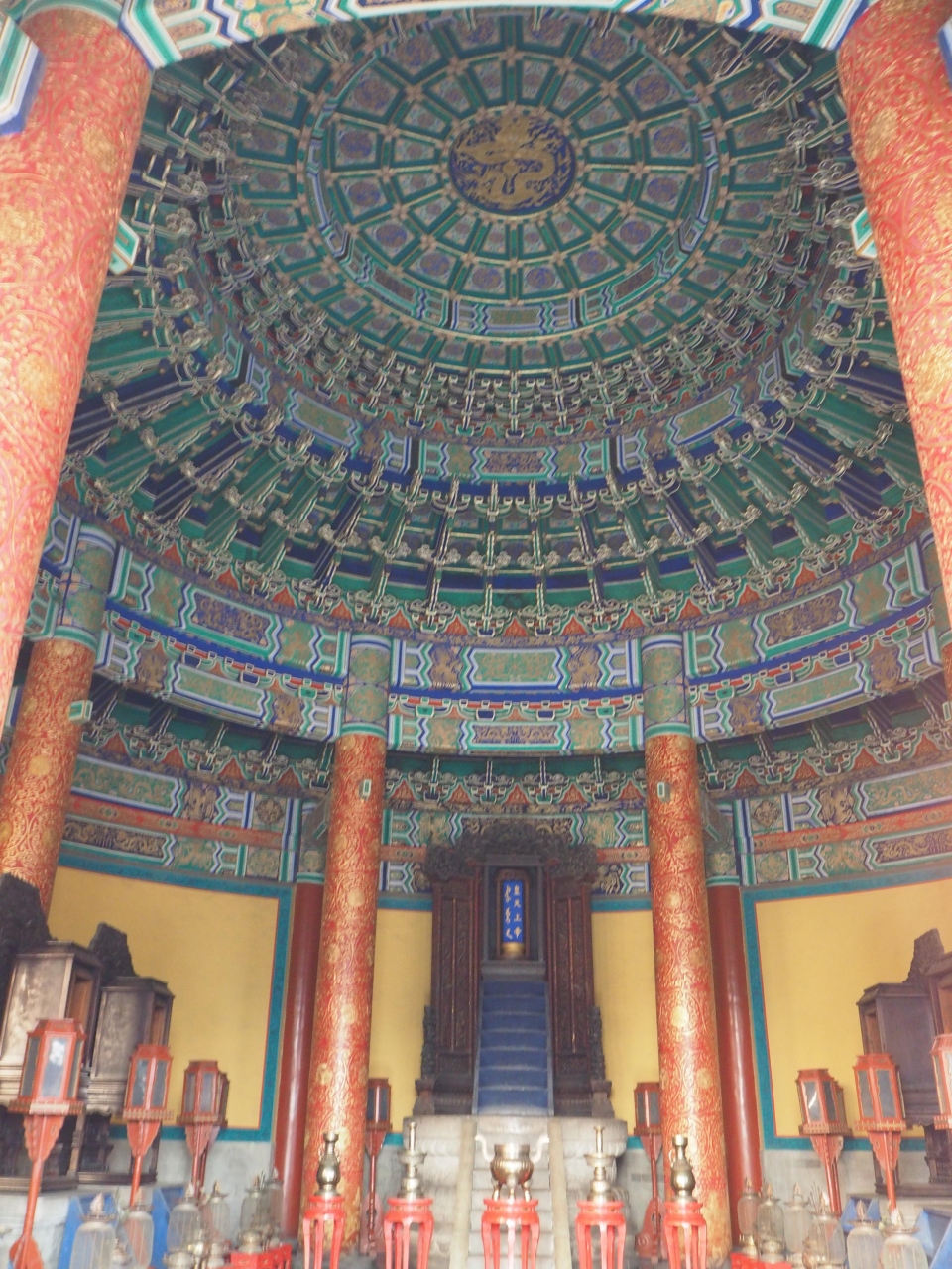 祈年殿は円型の三重屋根の建物。内部にも入れます。