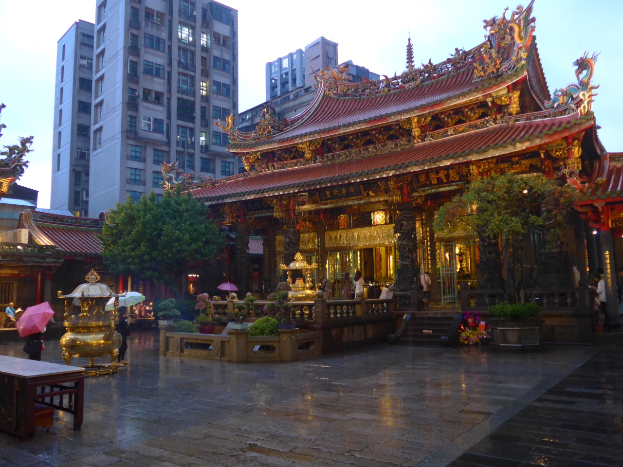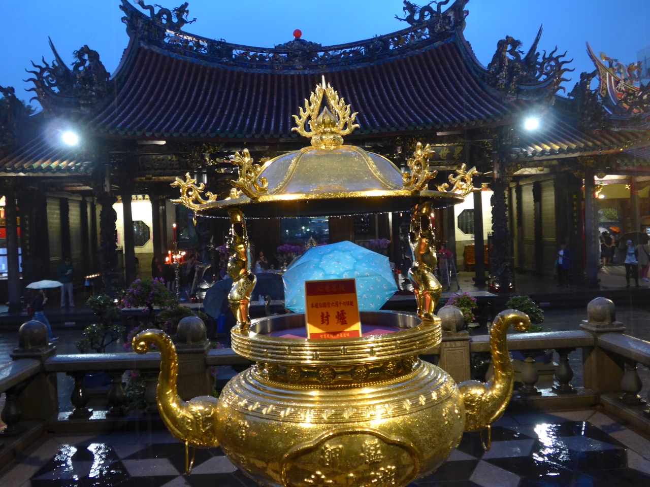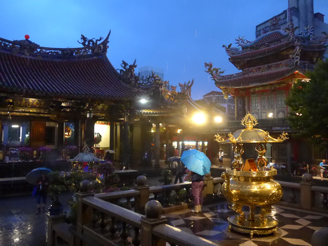 雨そして夕暮れ、灯りに照らされる龍山寺を訪れました!!とても風情があります(^0^)
