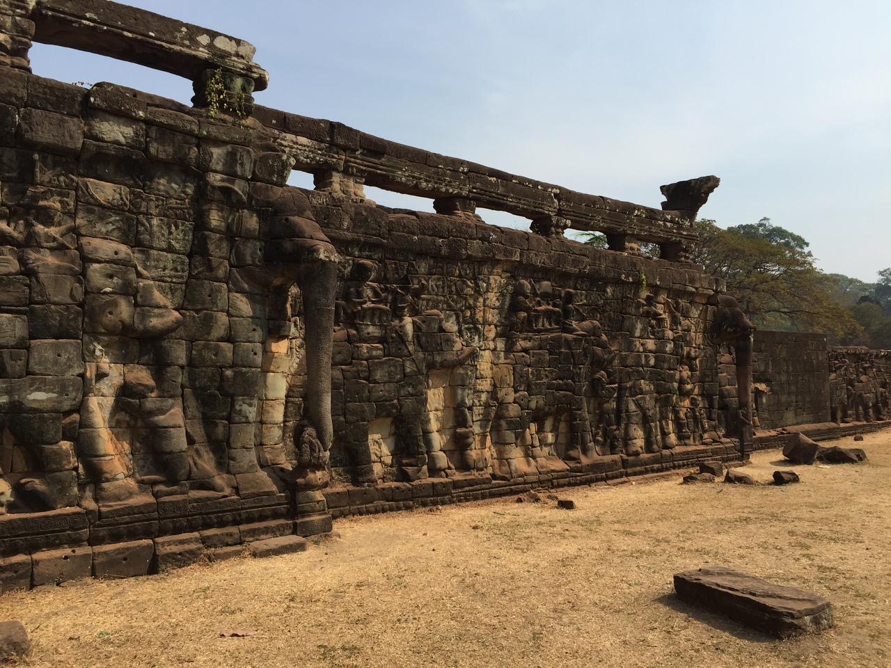 シュムリアップに行って遺跡を見てると、だんだんどれも似ているように見えますが、こちらは、象か横並びにズラーっと並んだ遺跡で、他のとは違う見応えのある場所でした。シュムリアップ遺跡観光ツアーでは、組み込まれてるところと、組み込まれてないものがあるようです。日陰がないので、体力温存して行って下さい。