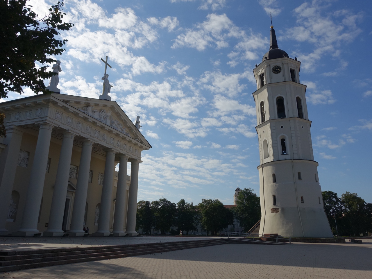 ビリニュス大聖堂の鐘楼は、大聖堂本体からは独立しており、正面すぐ脇に独立して建っています。聖堂本体が消滅し、鐘楼のみが残ってる教会はしばしば見かけますが、このようなスタイルの鐘楼は珍しいと思います。
