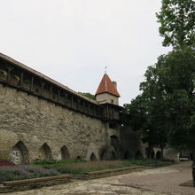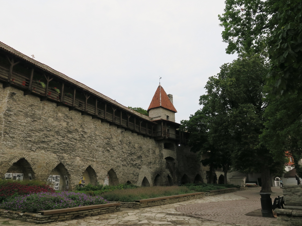 タリンの町を散策していると、よく、城壁に突き当たります。タリンの町が城壁によって守られていたことがよくわかります。城壁の切れ目である、出入り口には、赤い三角屋根の塔などが建てられていることが多く、おとぎの世界のようです。